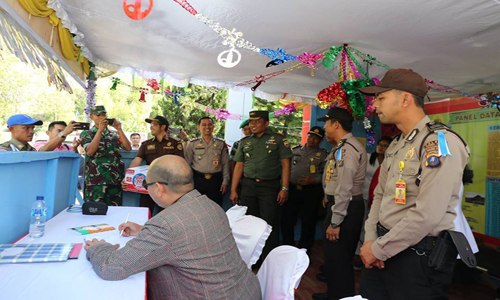 TAPUT,WARTAPENARIAU.com-Sabtu (22/12/2018), Bupati Tapanuli Utara Drs. Nikson Nababan, MSi bersama Kapolres Taput, AKBP Horas M Silaen, Dandim 0210/TU Letkol Inf Rico Siagian didampingi Kepala Satpol PP Rudi Sitorus SSos meninjau Pos Pengamanan Operasi Lilin Tahun 2018 menyambut Natal dan Tahun Baru, Tarutung.