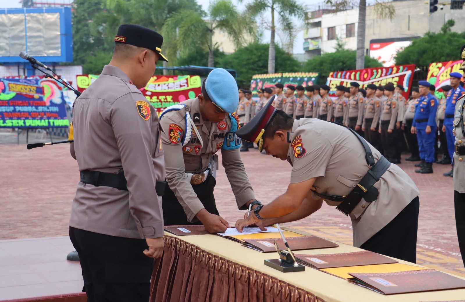 DUMAI,WARTAPENARIAU.com-Kapolres Dumai, AKBP Dhovan Oktavianton, S.H, S.I.K, M.Si pimpin pelaksanaan Upacara Serah Terima Jabatan (Sertijab) Kasat Lantas, Kasat Binmas, Kapolsek Dumai Barat, Kapolsek Dumai Timur dan Kapolsek KSKP jajaran Polres Dumai, bertempat di halaman Mapolres Dumai, Selasa (16/7/2024).