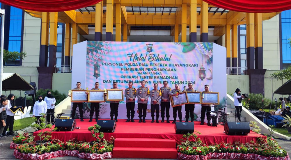 Kapolda Riau, Irjen Pol.M.Iqbal, didampingi Wakapolda Riau memberikan penghargaan kepada enam Polres yang berprestasi, yaitu kategori Optimalisasi Penyelenggaraan Operasi Tertib Ramadan Lancang Kuning 2024, kategori Optimalisasi Operasi Ketupat Lancang Kuning 2024 dan ketagori Kapolres terinovatif.