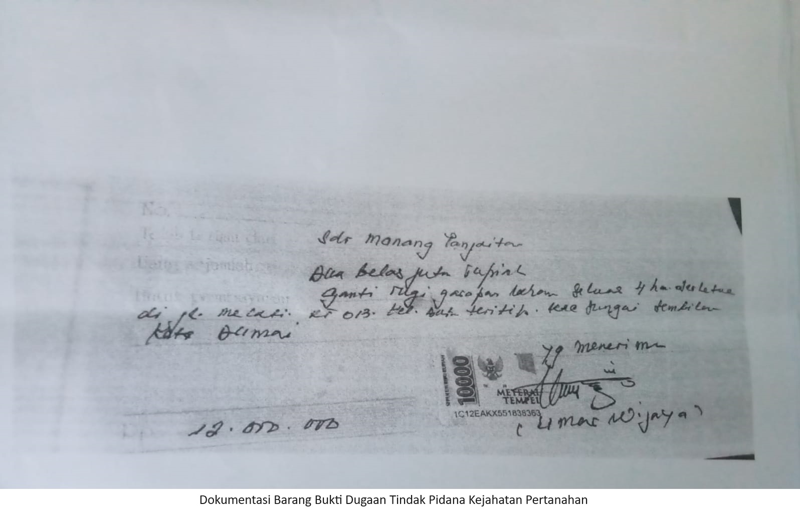 Lebih lanjut Sahala Sitompul menjelaskan, bahwa pada tanggal 22 April 2024, ada dua kelompok orang datang ke lahan kelompok tani IBSB, yaitu Ketua RT 13, Suarman dan Anto Toji mengaku sebagai pemilik lahan diatas lahan kelompok tani IBSB, dan meminta kelompok tani IBSB untuk meninggalkan lokasi berserta alat berat yang beroperasi diatas lahan tersebut.