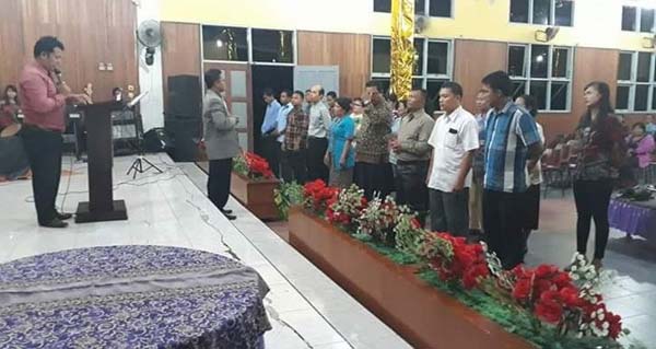 DUMAI,WARTAPENARIAU.com-Acara Ibadah, Pengangkatan dan Peneguhan Panitia Natal Persekutuan Jemaat Kharismatik Dumai (PJKD) tahun 2017, bertempat di Gedung Gereja Bethel Indonesia (GBI) Mawar Saron Jalan Air Bersih Kota Dumai,berjalan penuh sukacita, Senin (18/9/2017).