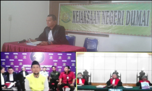 Sidang perkara via teleconference ini merupakan sidang perdana hari ini digelar, Kamis (26/3/2020) dilaksanakan oleh Kejaksaan Negeri Dumai dan PN Dumai.