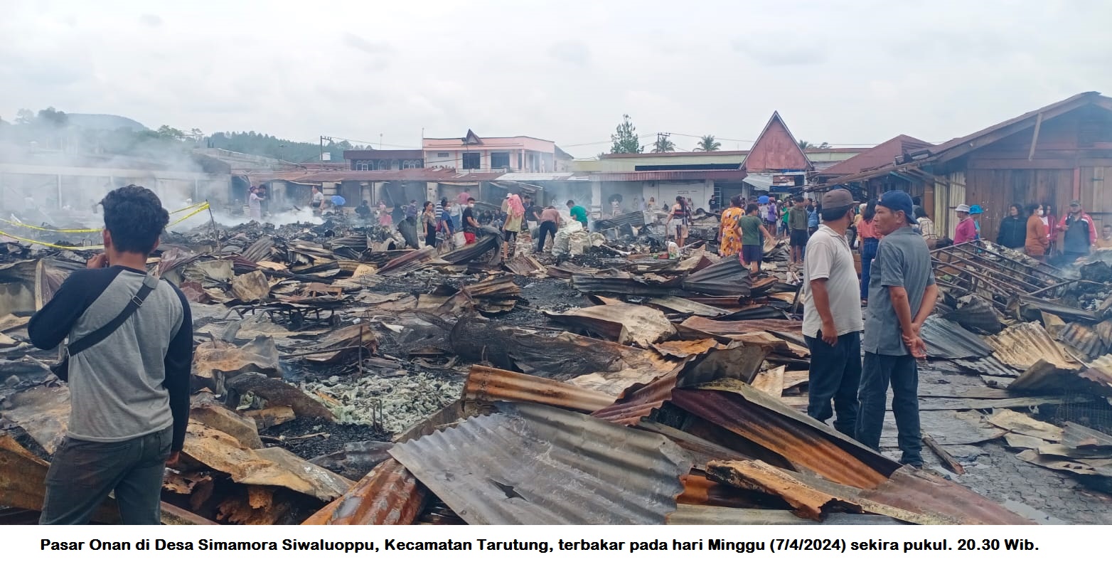 TAPUT,WARTAPENARIAU.com-Pasar onan di Desa Simamora Siwaluoppu,Kecamatan Tarutung, Kabupaten Tapanuli Utara, ludes terbakar, pada hari Minggu (07/4/2024) sekira pukul 20.30 Wib.